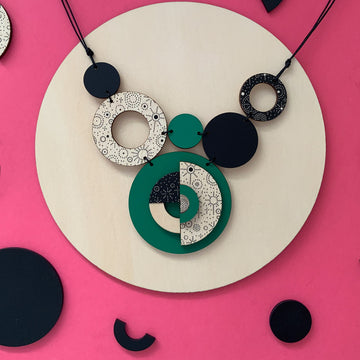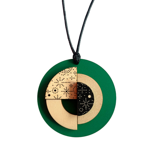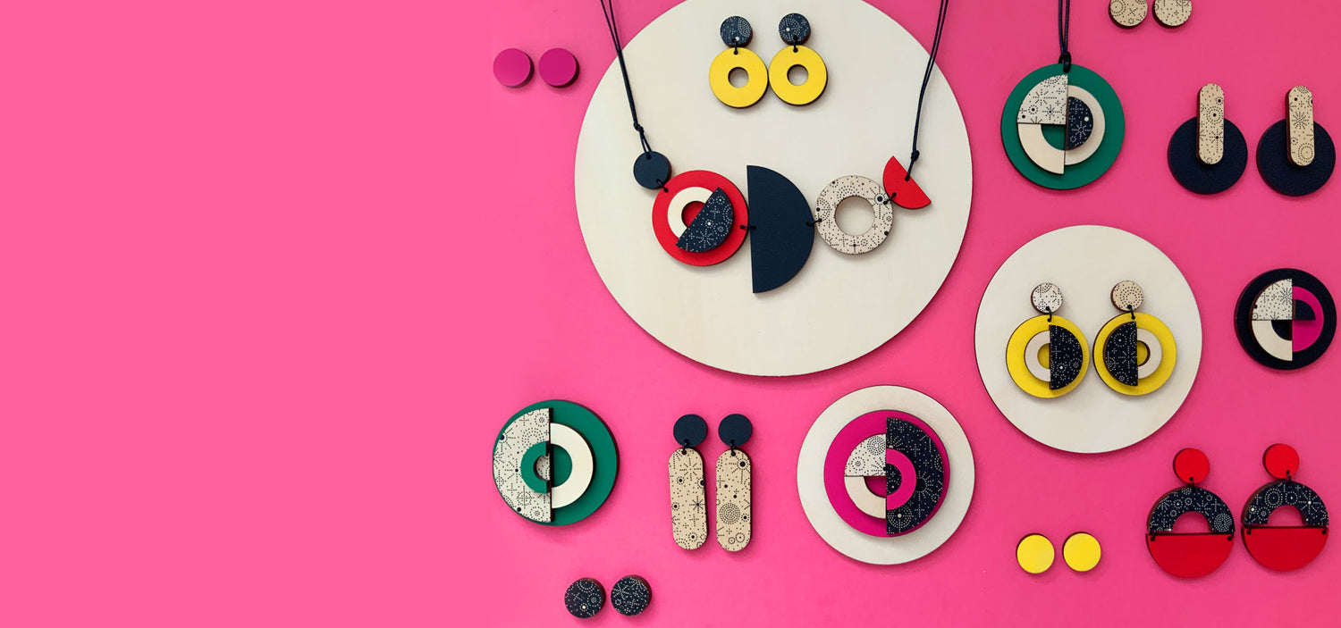 I design and make statement jewellery from sustainably sourced wood and bio materials