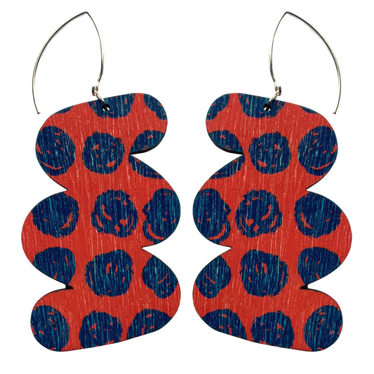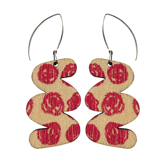 Zigzag shaped wooden jewellery made from recycled plywood.