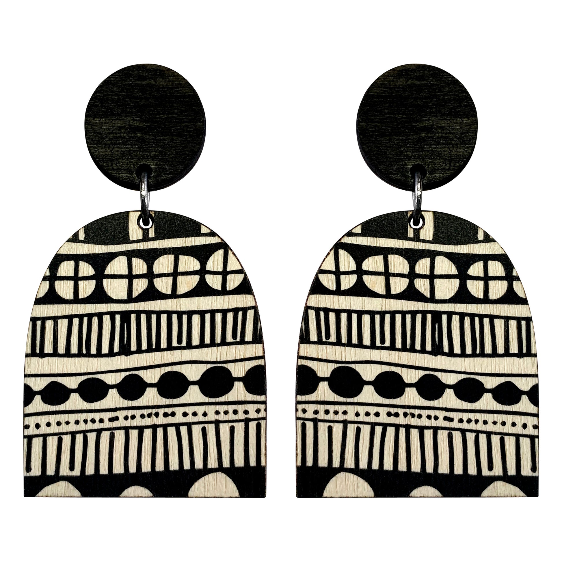 Statement wood doodle earrings in black