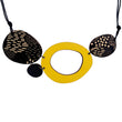 Part of our Night Garden range, this bold necklace adds a splash of colour to your outfit. Necklaces come with toggle ends and are packaged in a beautiful box. The length of each tie is 40 cm and can sit mid or high on the neck. The ties are made from black cotton cord. The necklace is 11.5 cm wide, 7 cm high and 0.3 cm deep.