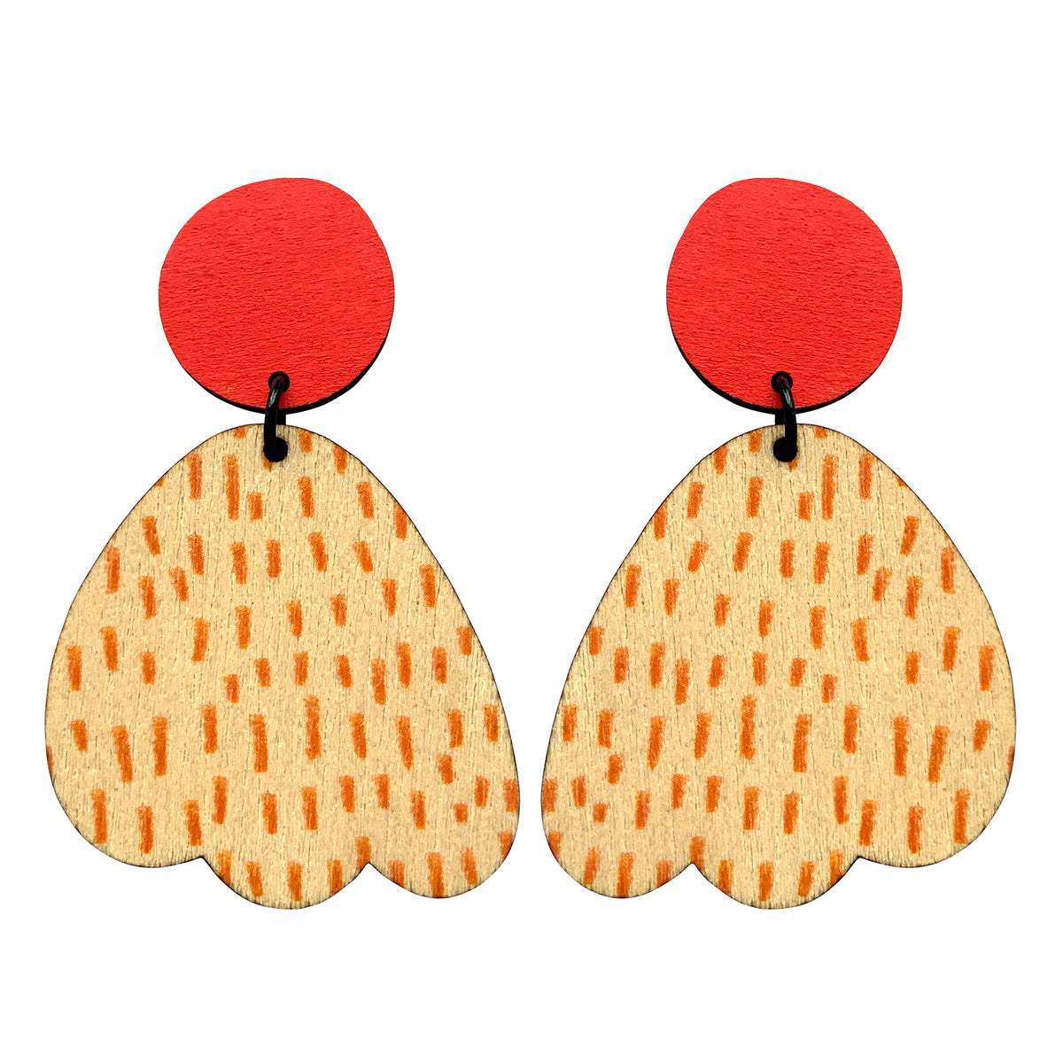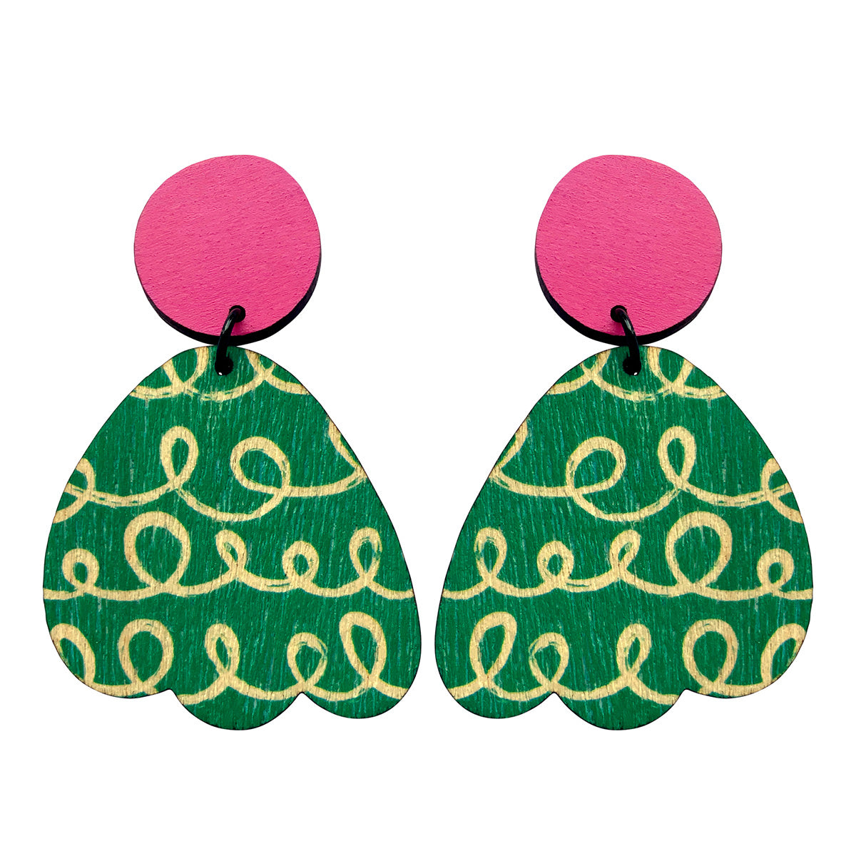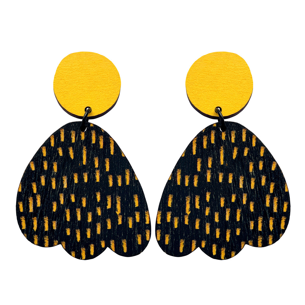 Beautiful tulip lightweight earrings made from recycled plywood. Each design is screen printed and hand painted. Stud earrings are made with surgical steel ear posts and backs. The earrings are 4 cm wide by 6.1 cm high at the tallest point and 0.3 cm deep. These come packaged in a beautiful box.