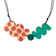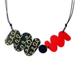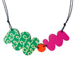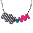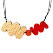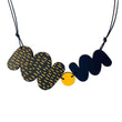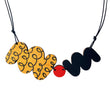 Zigzag shaped 3 piece necklace made from recycled plywood. Each design is screen printed and hand painted. Necklaces come with toggle ends and are packaged in a beautiful box. The length of each tie is 40 cm and can sit mid or high on the neck. The ties are made from black cotton cord. The necklace is 12 cm wide, 3.5 cm high and 0.3 cm deep.