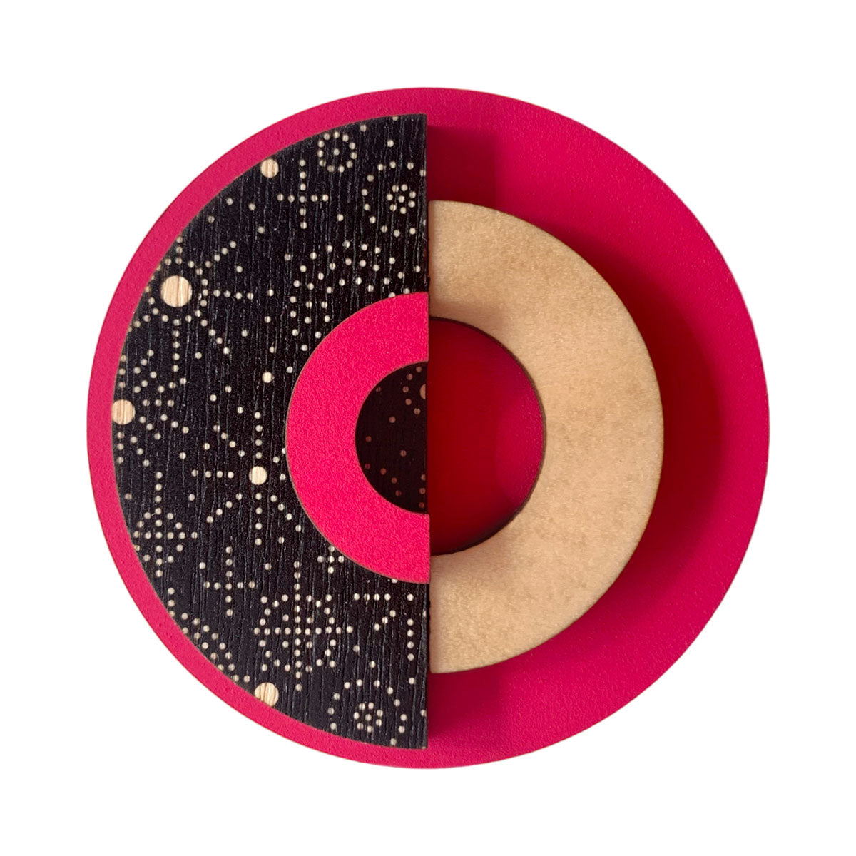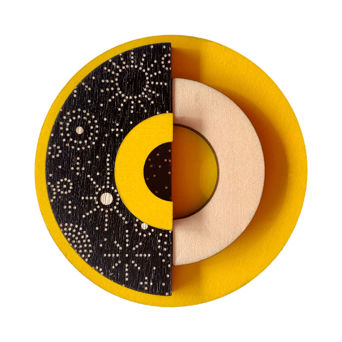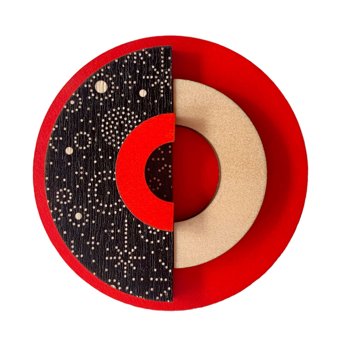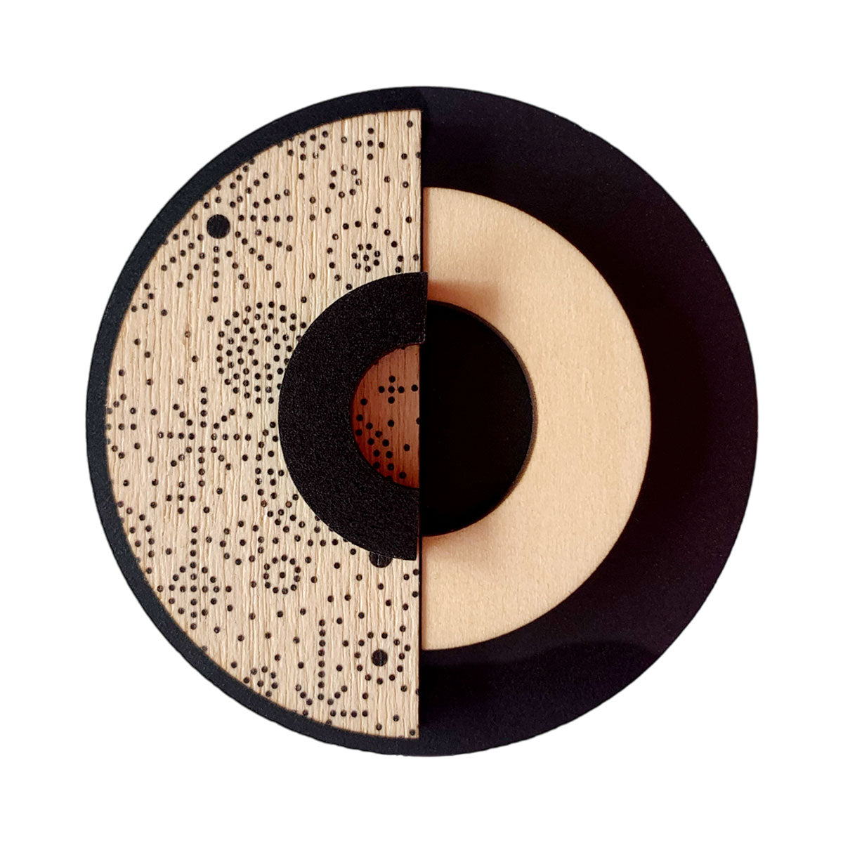 Perfect for geometric design brooch lovers! Brooch backings are nickel free and made from brass. These come packaged in a beautiful box. This brooch is 6 cm wide by 6 cm tall and 0.9 cm deep