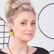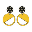 Make a statement with these fabulous bold earrings. Each pair is made by hand using screen printed pieces and painted recycled plywood. Each earring is 4.4 cm long and 0.4 cm deep. Surgical steel ear posts are used for all ear parts. Due to the handmade nature, the spot pattern will differ on each pair. These come beautifully packaged in a box.
