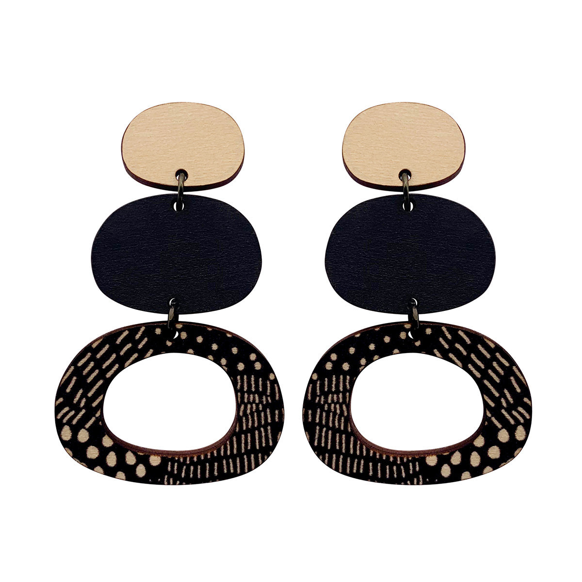Part of our Night Garden range, these bold earrings add a splash of colour to your outfit. The earrings are 3.6 cm wide by 6 cm high at the tallest point and 0.3 cm deep and the ear posts are surgical steel.