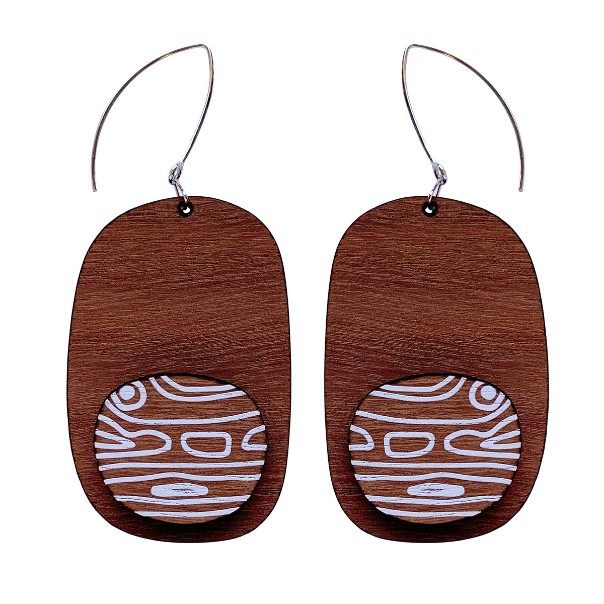Part of our Topographic Map range which is made using Australian Jarrah, these striking earrings look great with any outfit. The earrings are 3.5 cm wide by 5.3 cm high at the tallest point and 0.6 cm deep. Drop earrings are made with sterling silver ear posts.