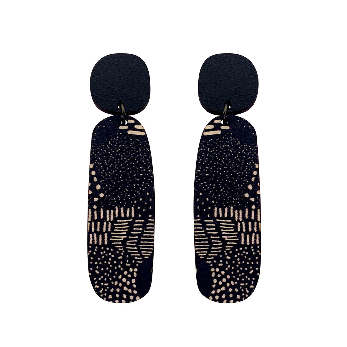 Part of our Night Garden range, these bold earrings add a splash of colour to your outfit. The earrings are 1.8 cm wide by 6.7 cm high at the tallest point and 0.3 cm deep and the ear posts are surgical steel.