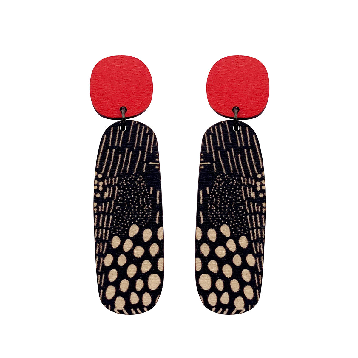 Part of our Night Garden range, these bold earrings add a splash of colour to your outfit. The earrings are 1.8 cm wide by 6.7 cm high at the tallest point and 0.3 cm deep and the ear posts are surgical steel.