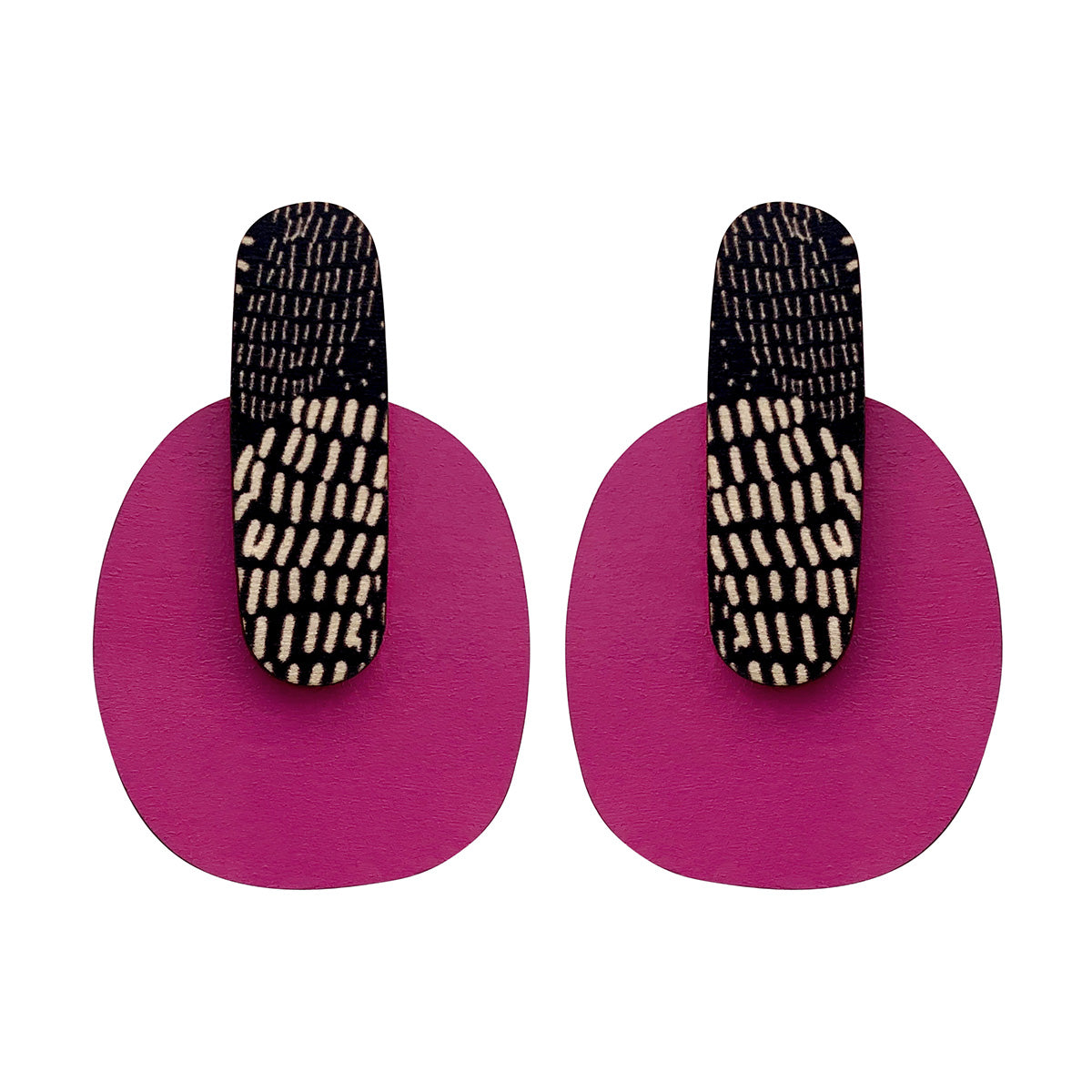 Part of our Night Garden range, these bold earrings add a splash of colour to your outfit. The earrings are 3.5 cm wide by 5.5 cm high at the tallest point and 0.6 cm deep and the ear posts are surgical steel.