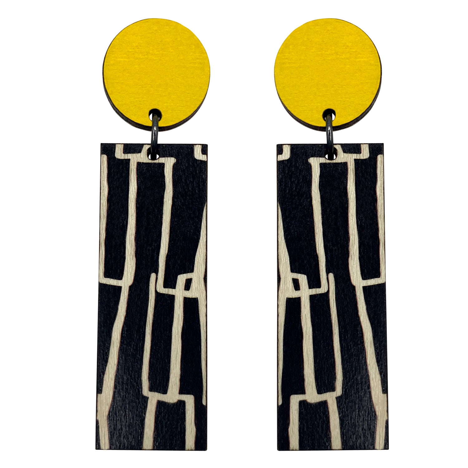 Yellow City pattern line wood earrings