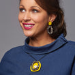 This lovely pendant is lightweight and hand painted on sustainable plywood. The length of the tie is 40cm long and can sit mid to high on the neck. The tie is made from cotton cord and comes packaged in a beautiful box.