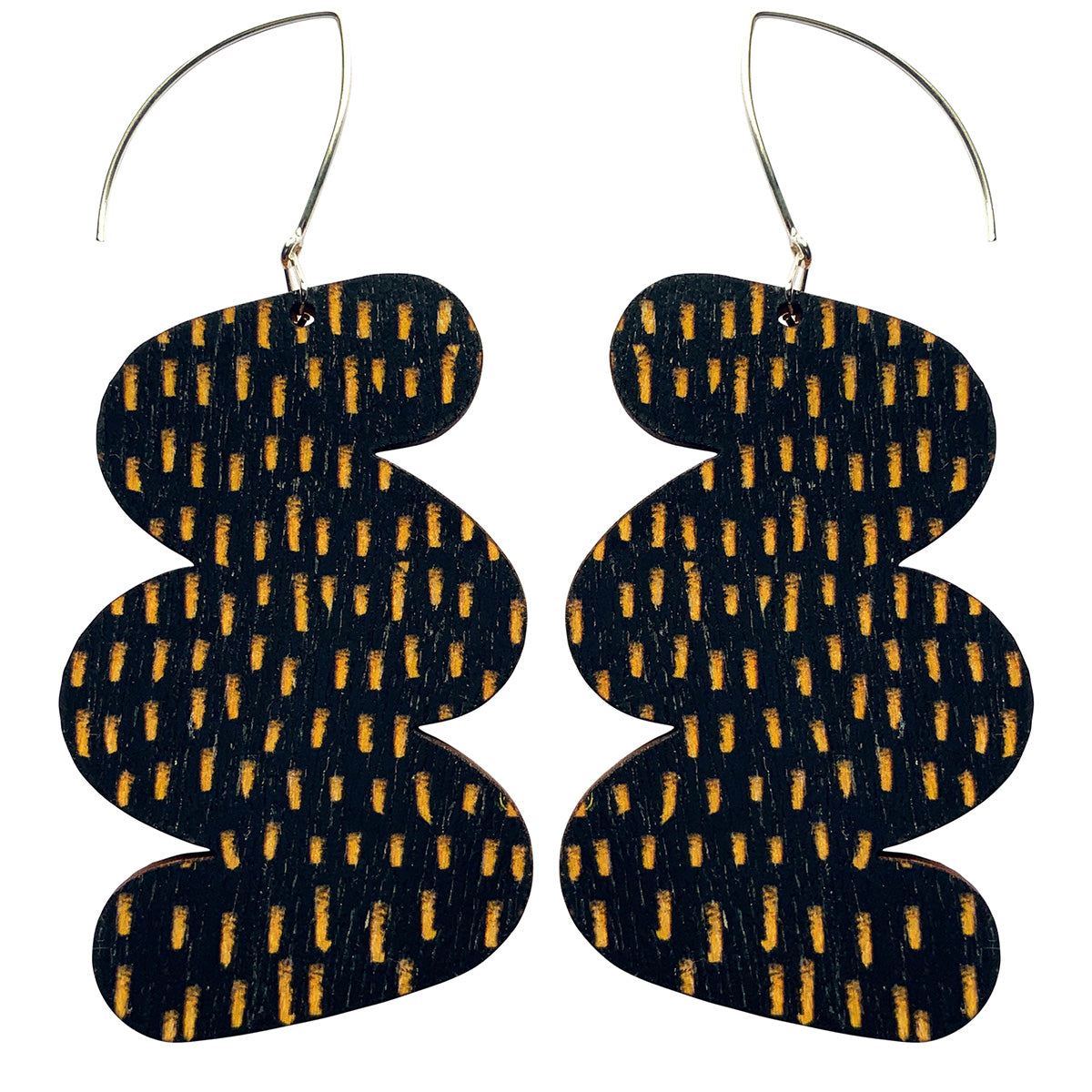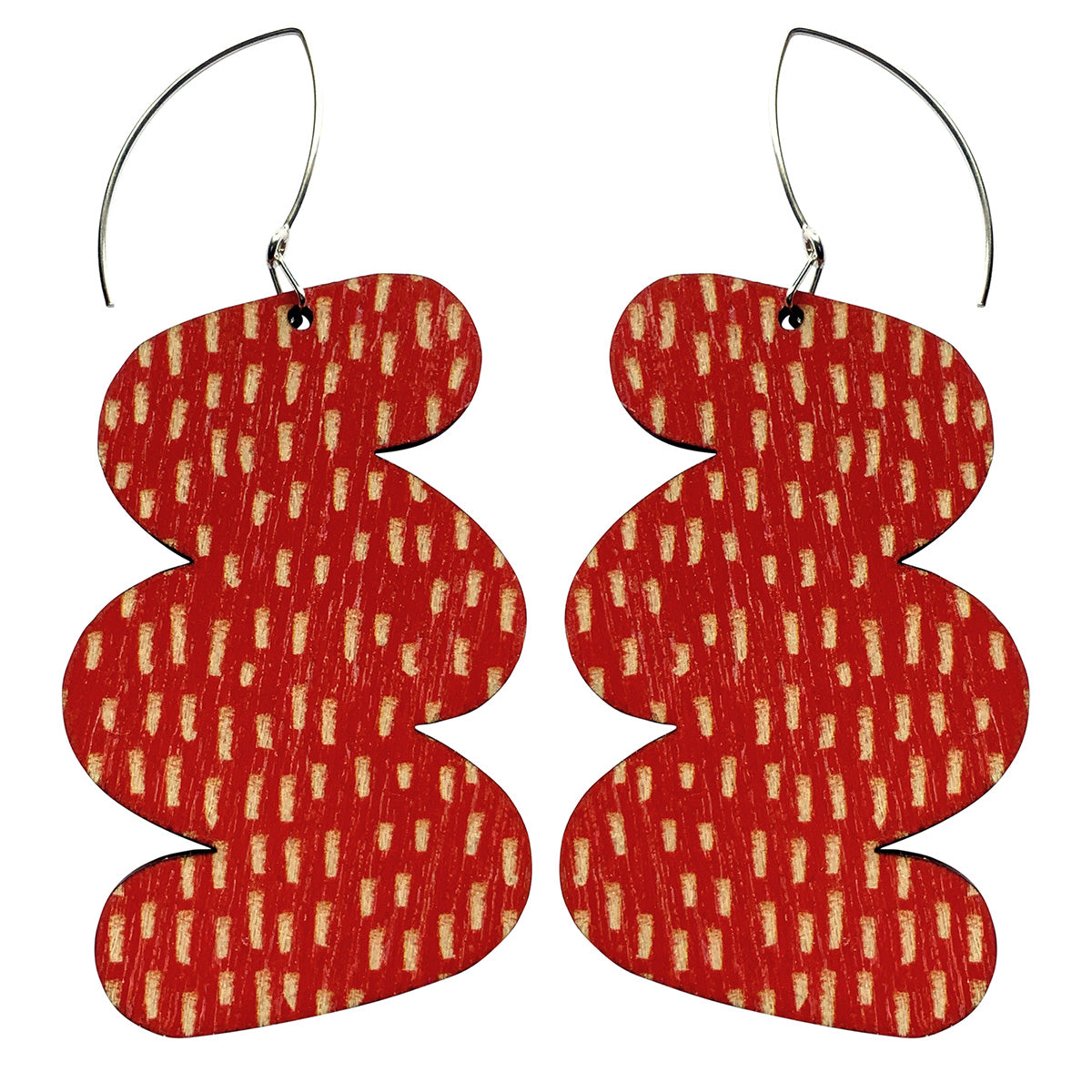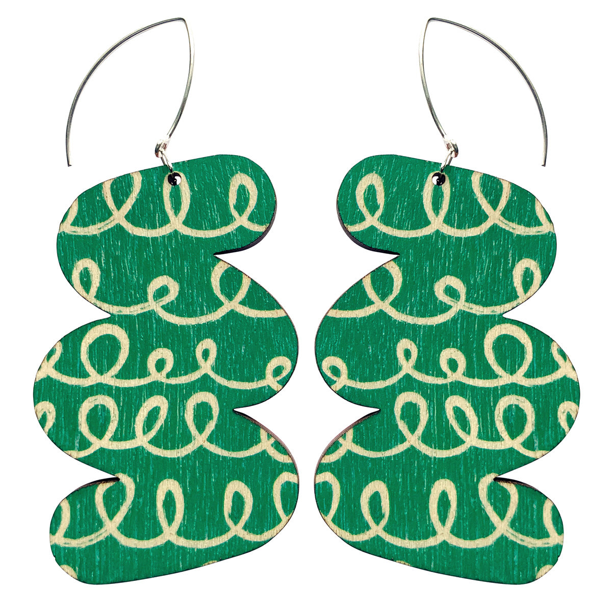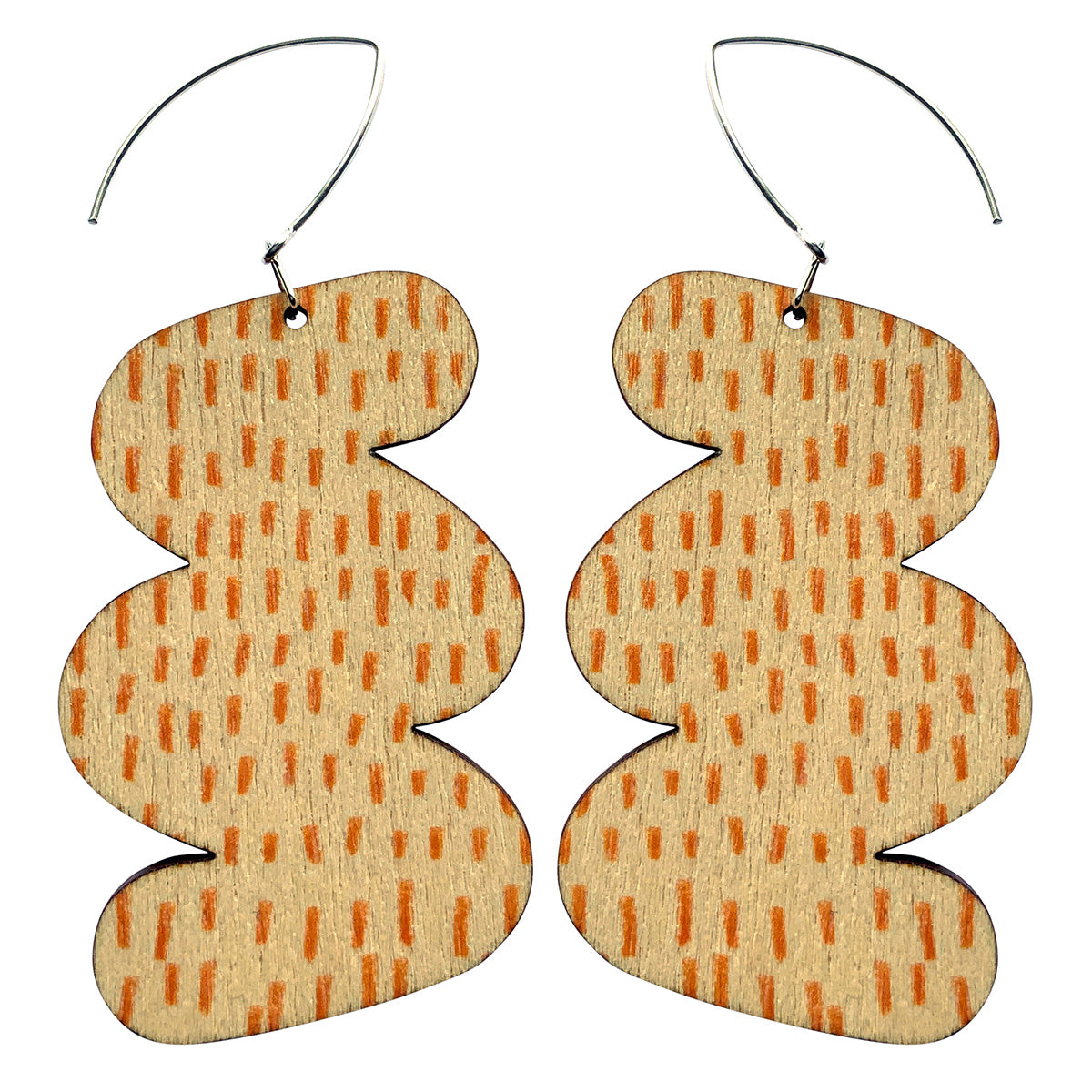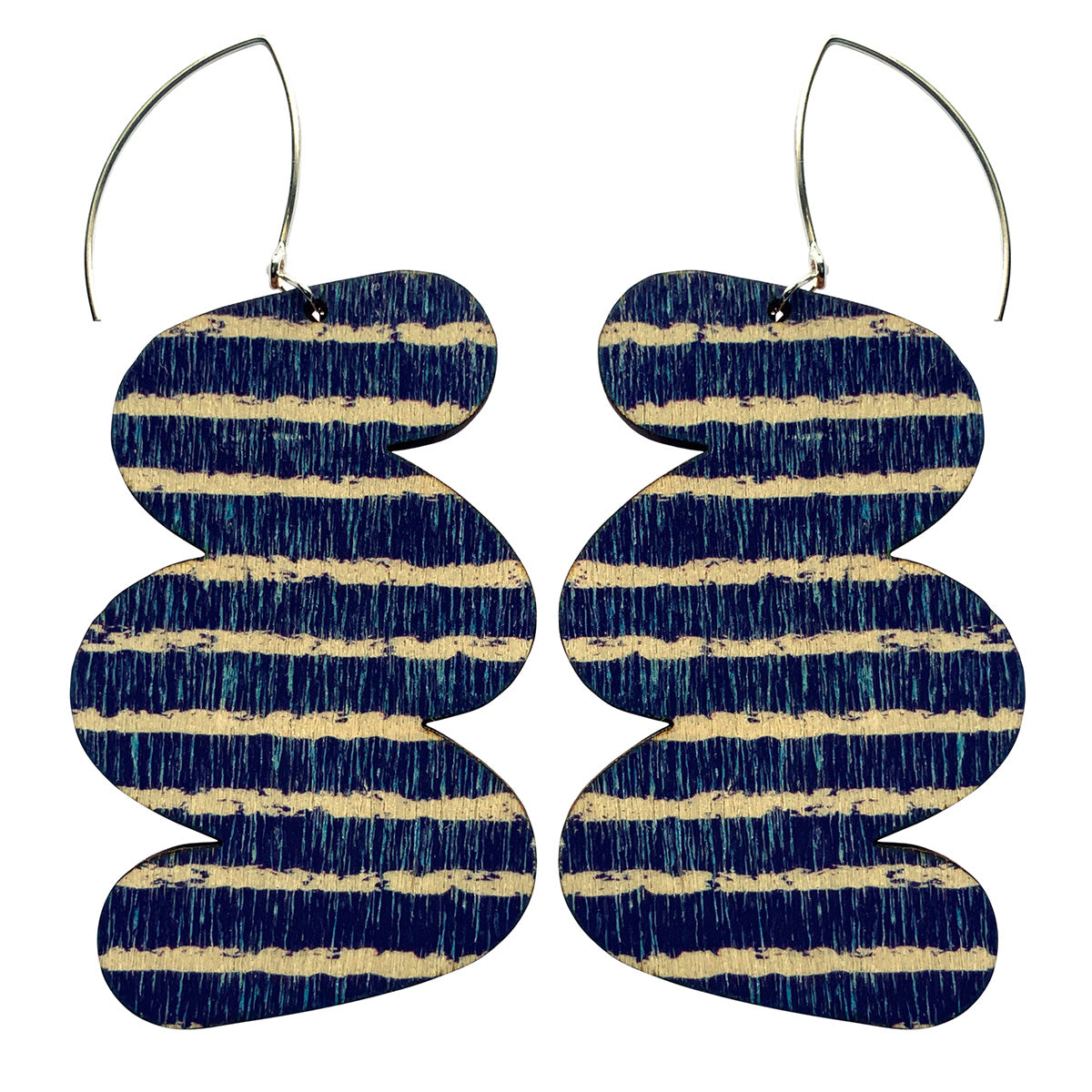Fun, lightweight zigzag drop earrings made from recycled plywood. Each design is screen printed then painted on the back. Drop earrings are made with sterling silver ear posts. These come packaged in a beautiful box.