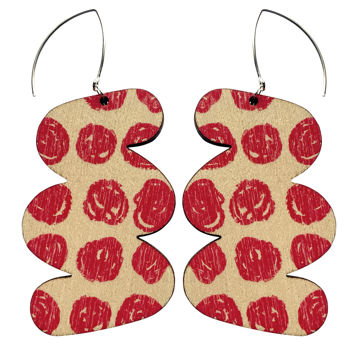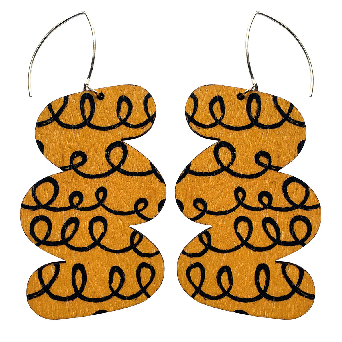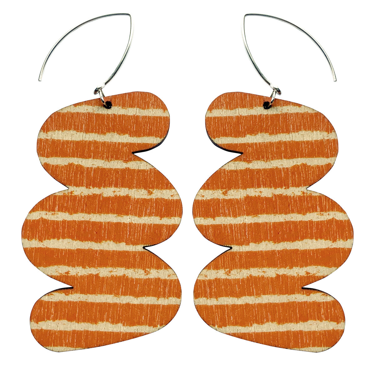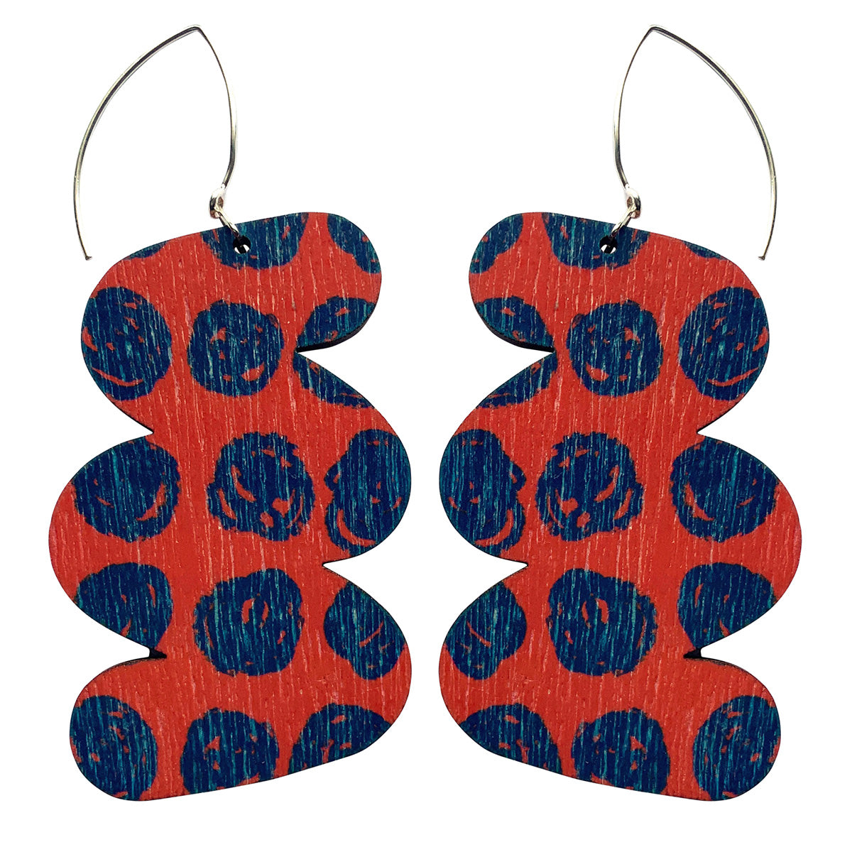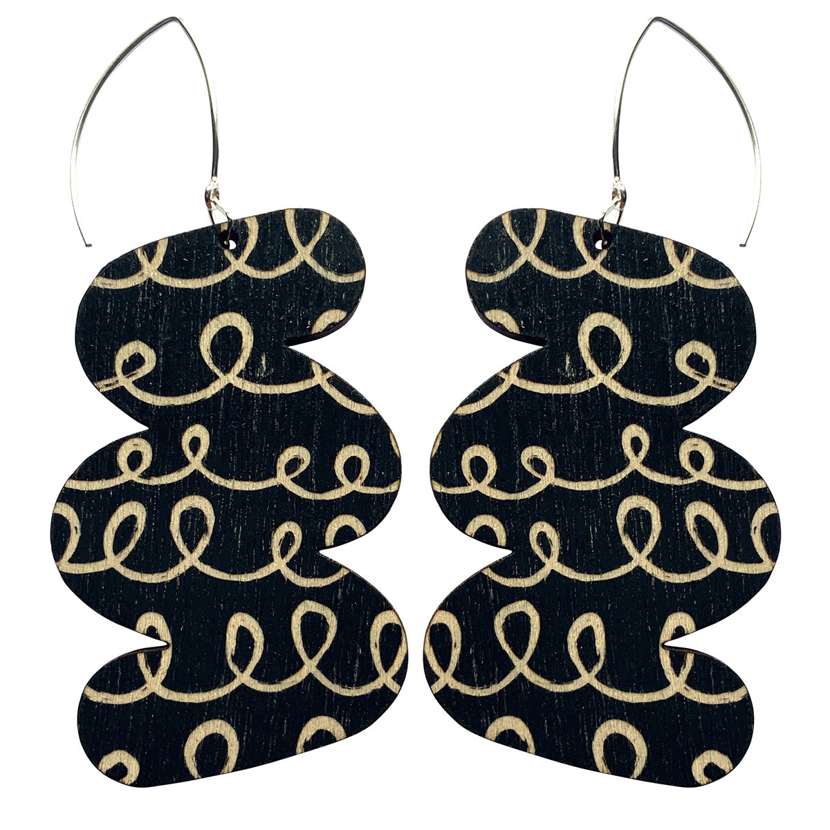 Fun, lightweight zigzag drop earrings made from recycled plywood. Each design is screen printed then painted on the back. Drop earrings are made with sterling silver ear posts. These come packaged in a beautiful box.